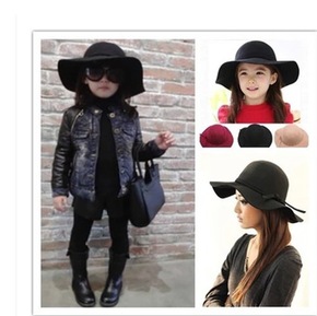 2018亲子礼帽韩国男女童母女英伦风毛呢出游大帽檐...