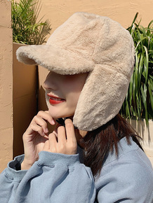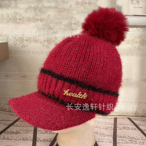 冬季帽子女韩版潮可爱针织帽兔毛线帽女秋冬加绒鸭舌中...
