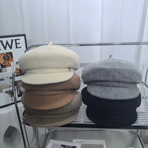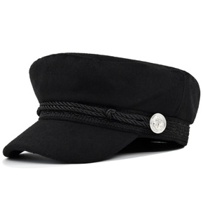 秋冬海军帽潮贝雷帽女秋冬金属扣八角海军帽八角帽毛呢...