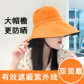 渔夫帽女夏季韩版潮日系双面遮脸防紫外线帽子大檐防晒...