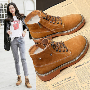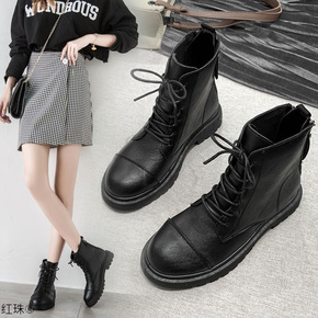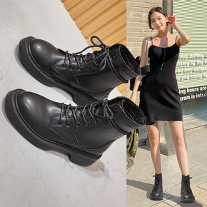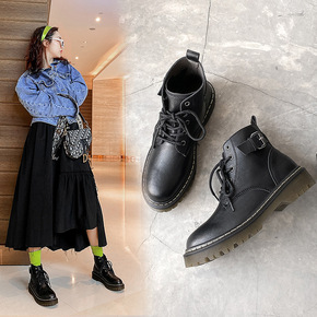 马丁靴女英伦风2021秋冬新款透气学生百搭复古系带...
