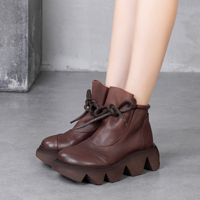 2021秋冬新款厚底松糕短筒马丁靴子女网红ins英...
