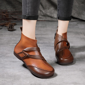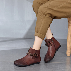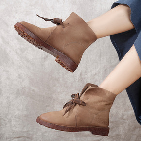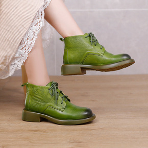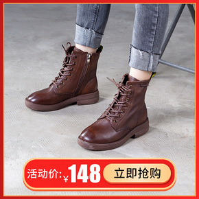 靴子女秋冬平底低跟英伦马丁靴女真皮中筒女情侣真皮短...