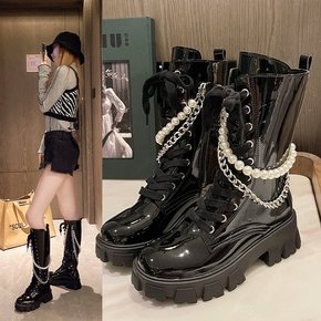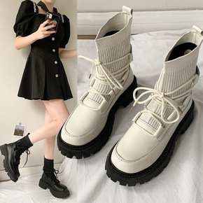 2021春秋单靴厚底马丁靴女潮英伦风粗跟厚底增高网...