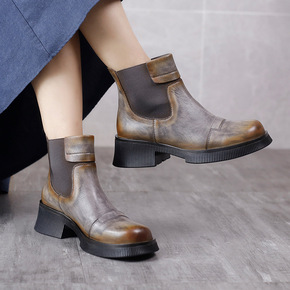 马丁靴女英伦风小短靴2021年春秋冬圆头单靴厚底方...