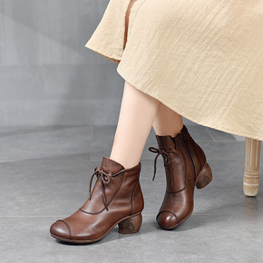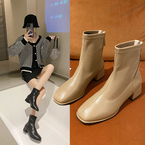时装短靴女2021秋冬网红英伦风瘦瘦靴韩版粗跟方头...