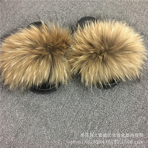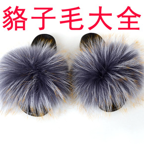 2021新款貉子毛一字拖外穿PVC沙滩鞋真狐狸皮草...