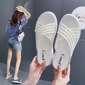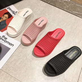 新款夏季凉拖鞋女百搭厚底坡跟时尚外穿沙滩鞋网面镂空...