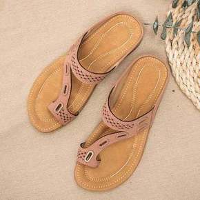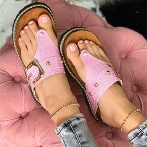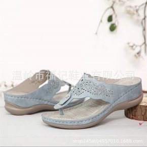 独立站2020夏季跨境新款夹趾人字拖皮革金属镂空拼...