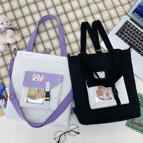 新款帆布斜挎包女批发清新甜美少女单肩包多用双肩背包...