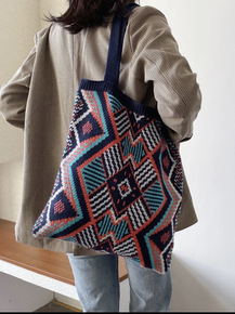 亚马逊新款韩国格子针织包格纹针织手包单肩包女书包文...