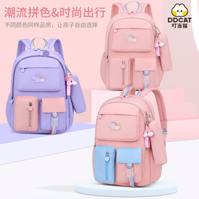 防泼水新款卡通双肩背包儿童马卡龙撞色初高中小学生书...