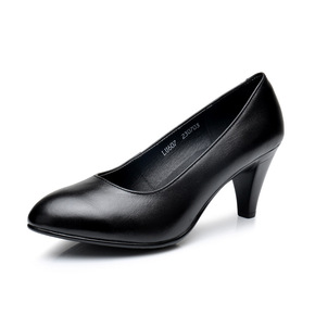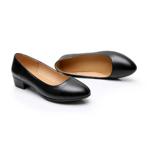 专注工作鞋30年 酒店工装鞋女黑色职业舒适高跟尖头...