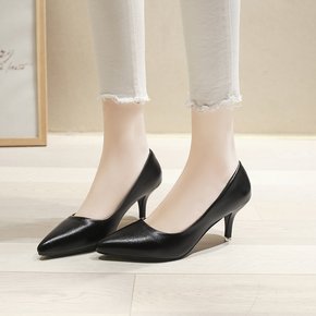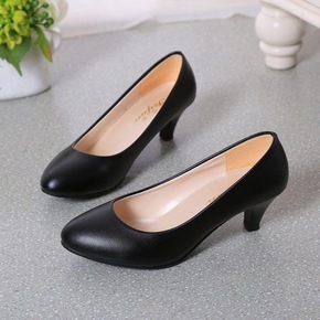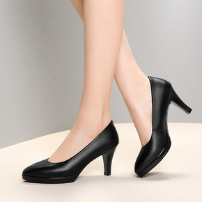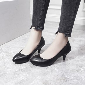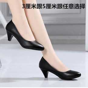 舒适职业工作鞋女黑色皮鞋女细跟高跟鞋软皮单鞋春工装...