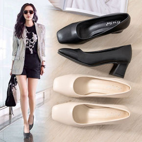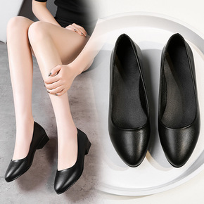 #t软底正装职业工作鞋粗跟单鞋中高跟鞋2021夏季...
