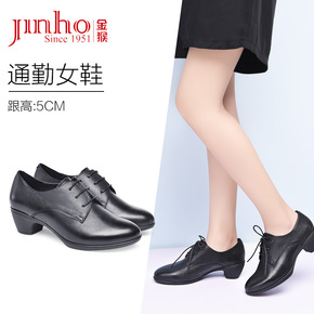 2020新款女士中跟单鞋女真皮百搭工作鞋通勤黑色职...