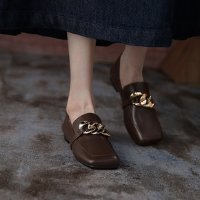 方头小皮鞋配西装工作鞋金属扣穆勒鞋粗跟纯色软皮鞋商...