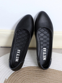 工作鞋女黑色平底皮鞋空姐酒店上班鞋夏软底浅口职业工...