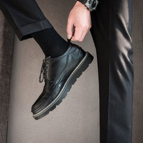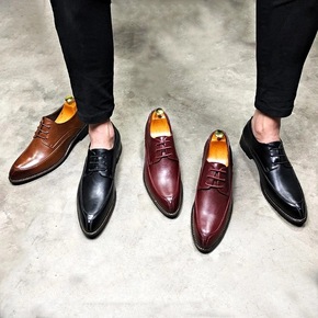 夏季皮鞋男韩版青年棕色尖头发型师潮流商务内增高英伦...