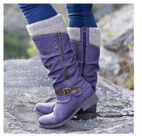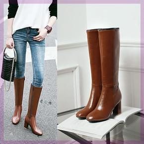 欧美外贸大码女鞋冬季新款女靴拉链低跟靴子高筒靴长靴...