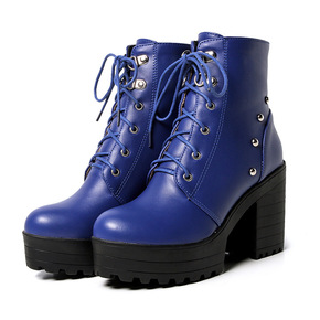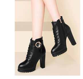 2020外贸新款马丁靴女超高跟细跟皮面圆头防水台厚...