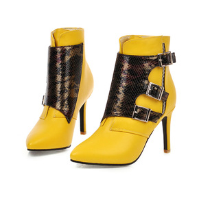 2020秋冬新款女靴高跟短靴拼色靴子外贸大码女鞋速...