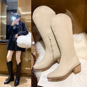 2021马丁瘦瘦靴ins高跟米白色靴子女短靴法式显...
