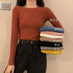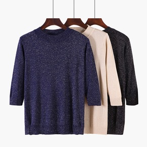 2019秋季新款毛衣韩版亮丝圆领中袖针织打底外穿百...