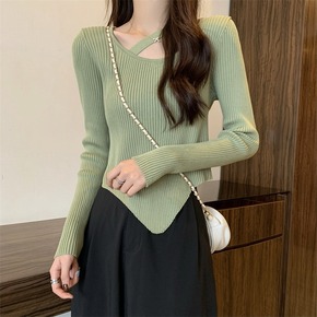不规则毛衣女学生秋冬内搭打底衫女大码胖设计感长袖针...