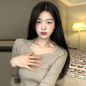 实拍!针织毛衣打底衫女2022年纯色交叉v领修身显...