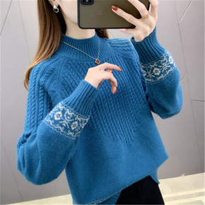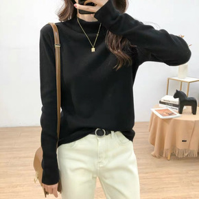 2022年秋季新款洋气半高领毛衣宽松内搭长袖针织打...