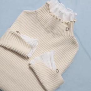 高领打底毛衣假两件套头蕾丝荷叶木耳边领上衣女202...