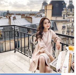 中长款过膝加厚2021秋冬季港风毛衣针织打底连衣裙...