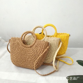 新款纸绳编织包小清新斜挎草编包沙滩度假编织包单肩女...