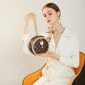 水桶包女2022新款韩版时尚老花印花包圆柱小手提包...