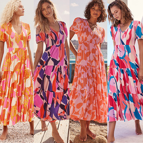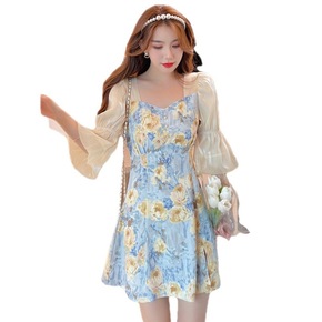 2022夏季女连衣裙花丛 仙仙晕染花色天丝夏日套装...
