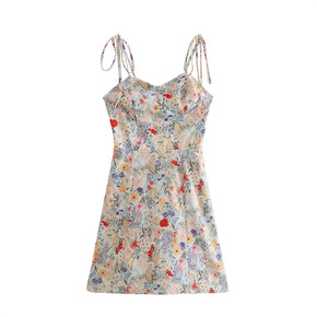 春夏新款浪漫印花吊带裙高腰显瘦连衣裙22法式甜美清...