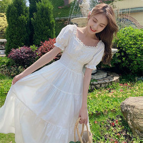 2022春夏新款国风复古镂空绣花连衣裙 时尚V领大...