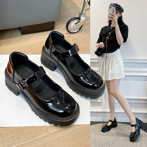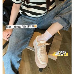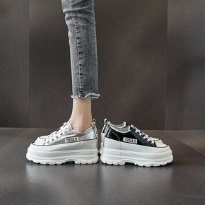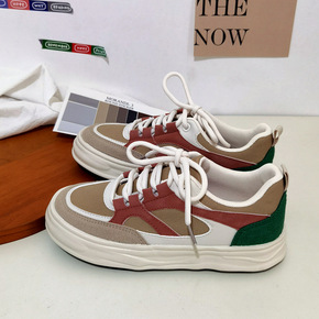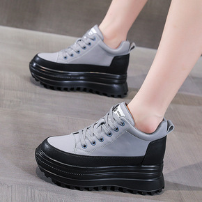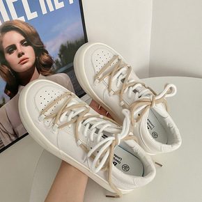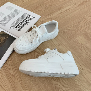 2022秋季新款圆头皮面学生百搭板鞋双鞋带厚底小白...