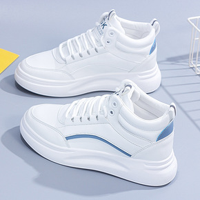 真皮小白鞋女秋季2022新款韩版百搭高帮厚底休闲女...