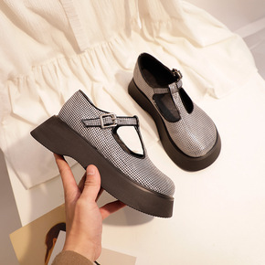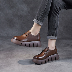 单鞋女2022年春季新款复古手工真皮厚底松糕鞋圆头...