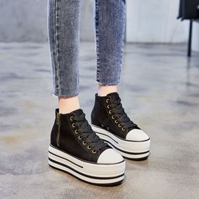 厚底溶解帆布鞋女2022新款拼色运动休闲鞋系带网红...