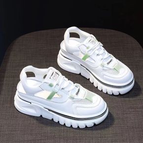 鞋子女夏2022新款韩版百搭厚底松糕小白鞋女镂空i...