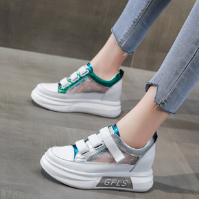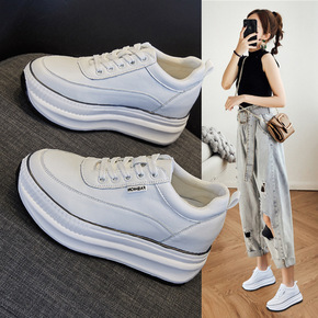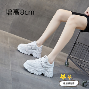 2022夏季新款网面透气内增高小白鞋女牛皮厚底松糕...