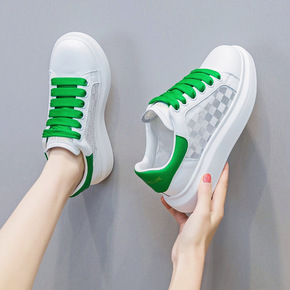 真皮网面小白鞋女2022夏季新款百搭休闲厚底增高休...