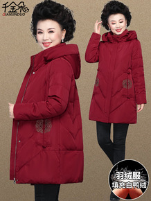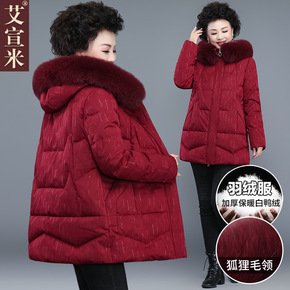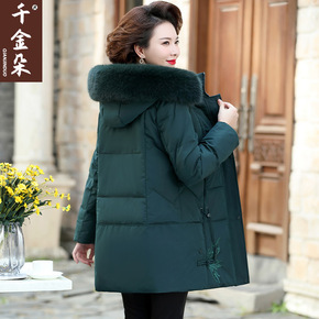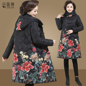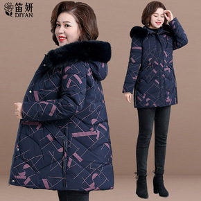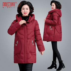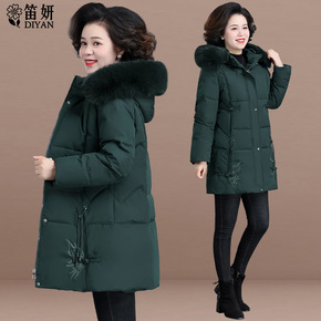 中年妈妈冬装羽绒服2021新款秋冬季中长款加厚棉衣...