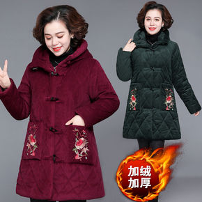 中老年人棉服女冬季民族风连帽中长款外套大码妈妈棉袄...