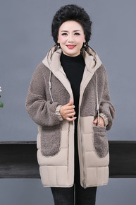 中老年羽绒棉服女羊剪绒大衣妈妈冬装颗粒绒外套棉衣中...