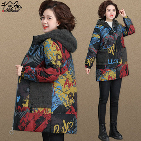 妈妈冬装加绒加厚派克服外套2021新款中老年棉衣女...
