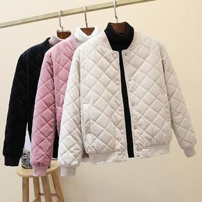 冬装韩版休闲夹棉加厚棉衣外套女宽松百搭大口袋棒球领...